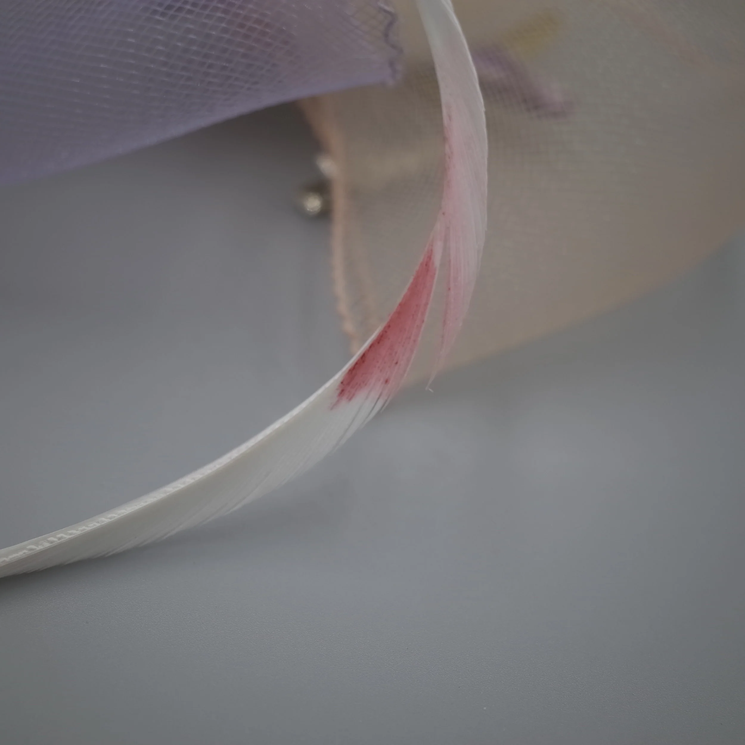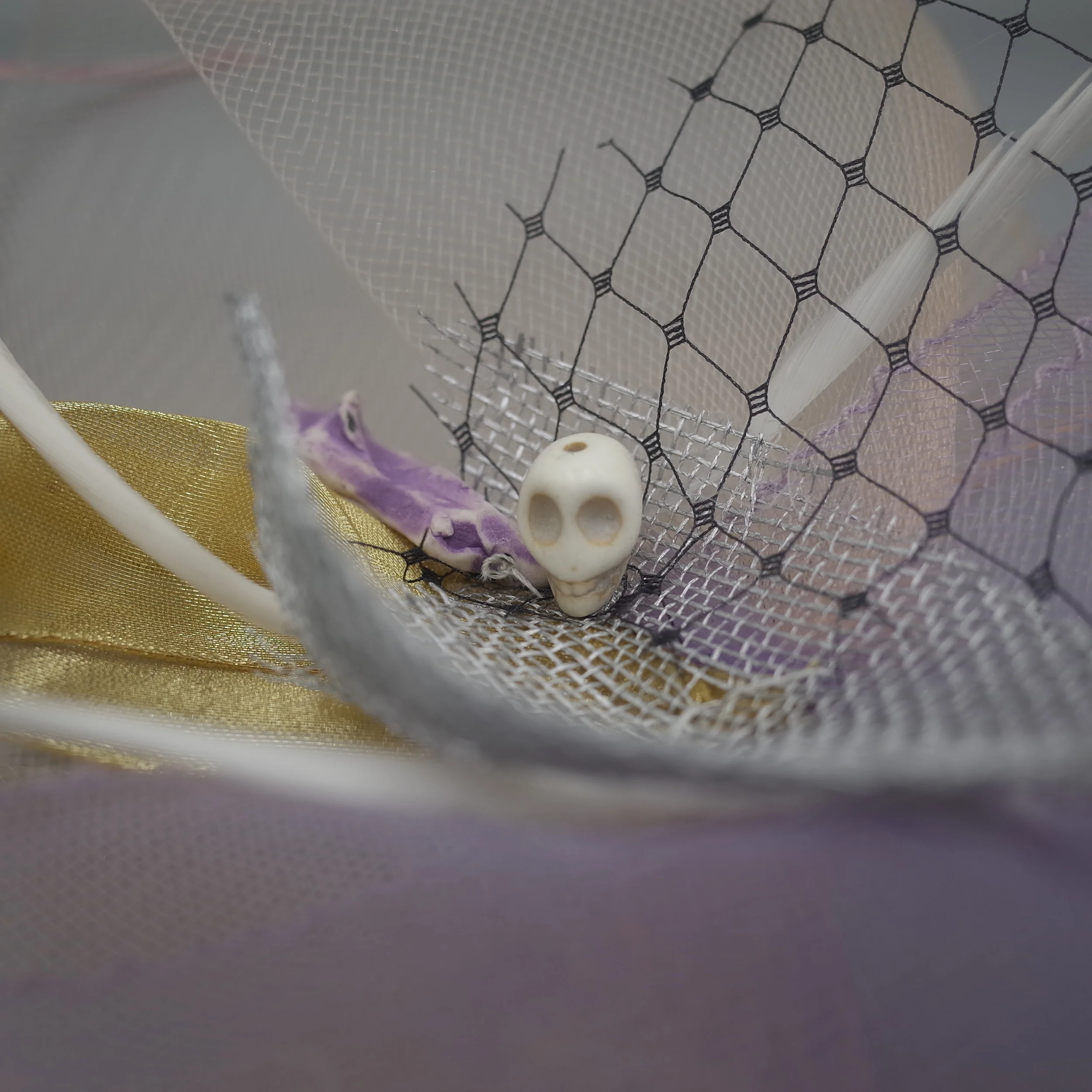 The Ghost Ranch 幽灵之谷, 2017. Pink and purple crin from North Carolina; flamingo pink feather from Carolina; ivory ostrich feather from London; a miniature skull as a gift from Morgan O'Hara.