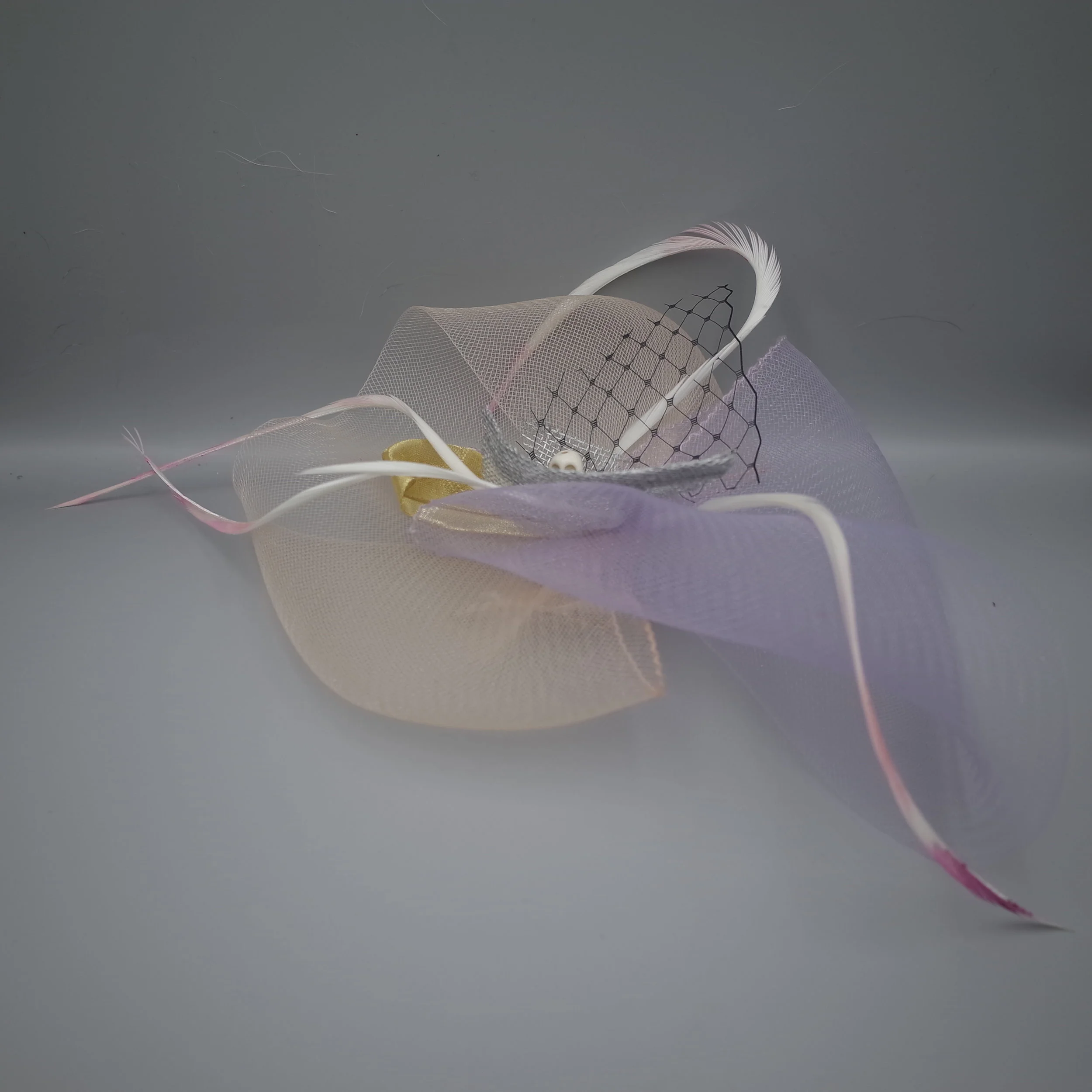 Autumn in Kyoto 京都之秋, 2017.Yellow fascinator base from North Carolina; black veiling from London; vintage Japanese fabrics as a gift from Tianxing Wan; a vintage pink shoe brooch from Connecticut.