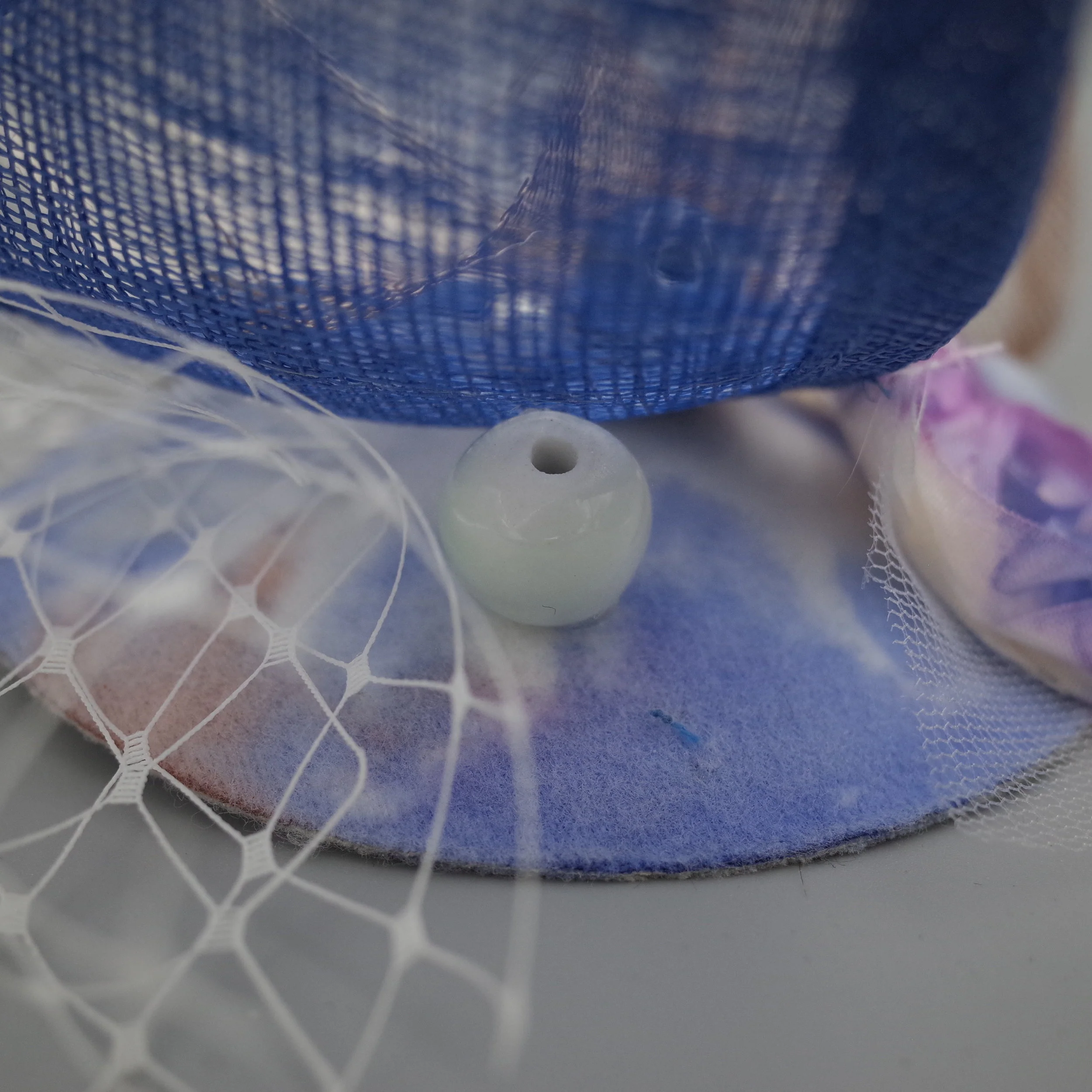 Klein Blue 克莱茵蓝, 2015. Hand painted klein blue cotton fascinator base; ivory sinamay trim from London; purple crystal from Morgan O'Hara's collection; ivory pearls from New York; ostrich spine feather from London.
