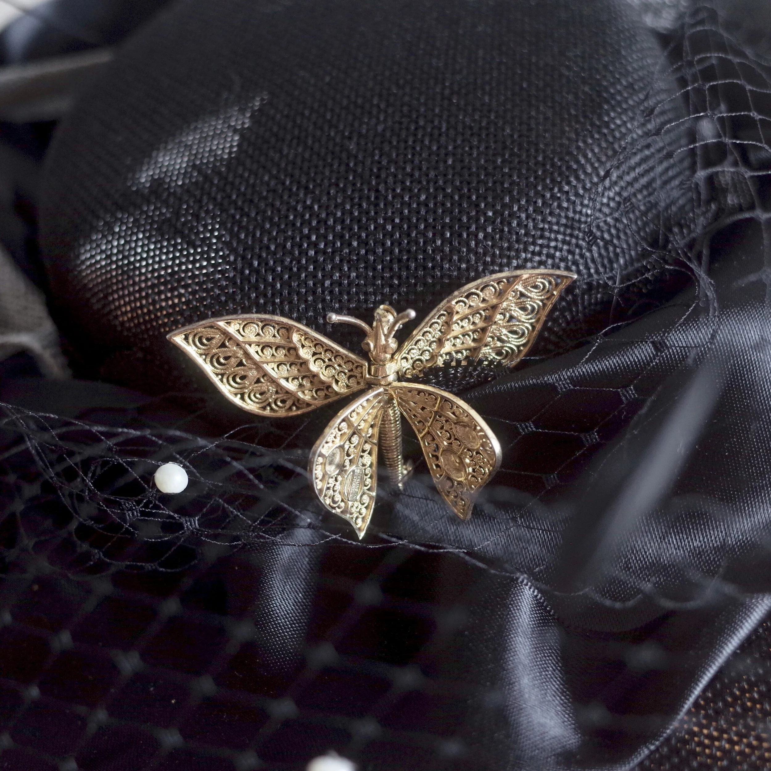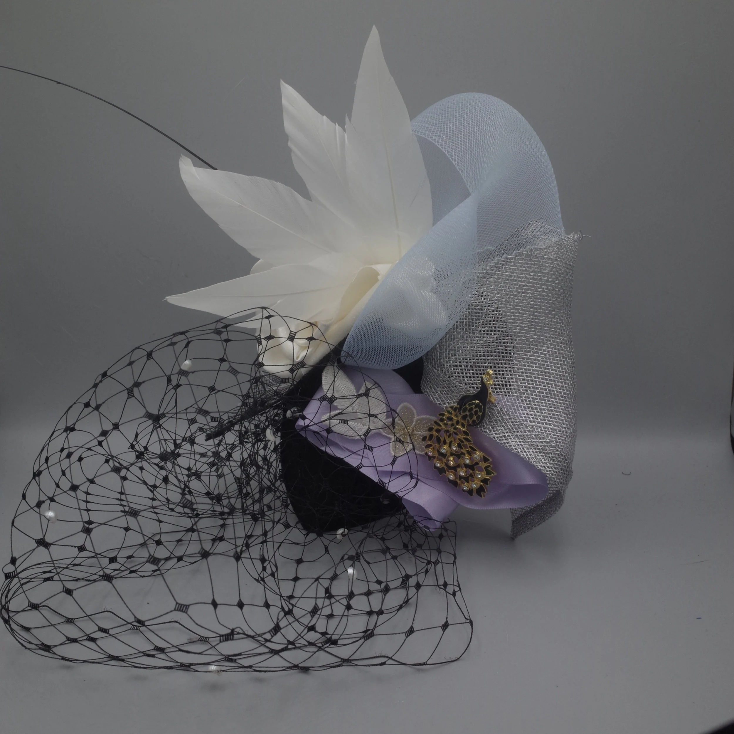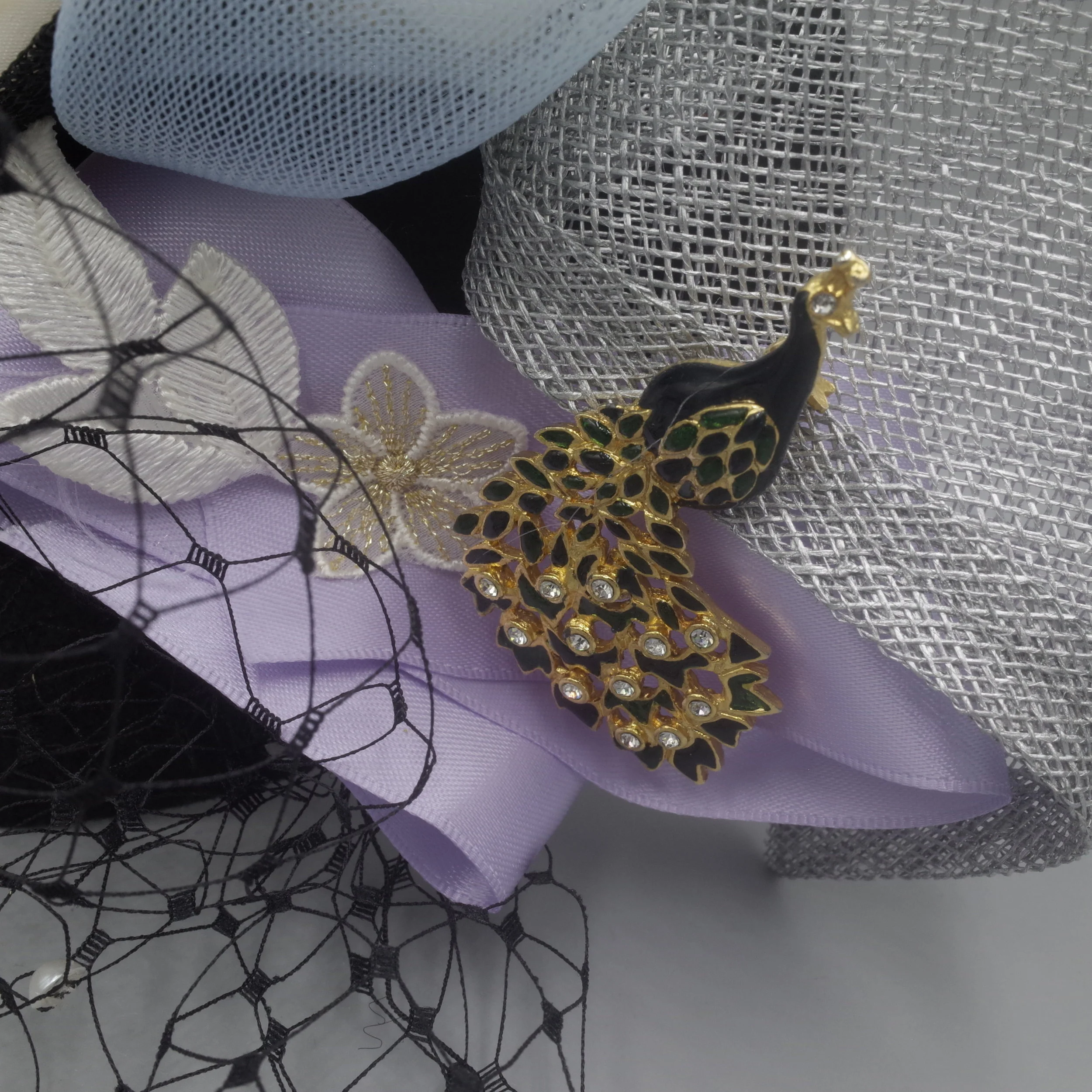 A vintage diamond peacock brooch is the inspiration of the fasinator. In the end of Amarcord (1973), a film by Federico Fellini, a peacock escapes and spreads its dazzling tail feathers in the midst of a rare snowstorm. The extradiornary beauty from daily life becomes unforgettable memory of the residents from the town. Art is like this, fragments that stay in the collective memory. This hat is customized made for Ms. Ying Qing from Vancouver.