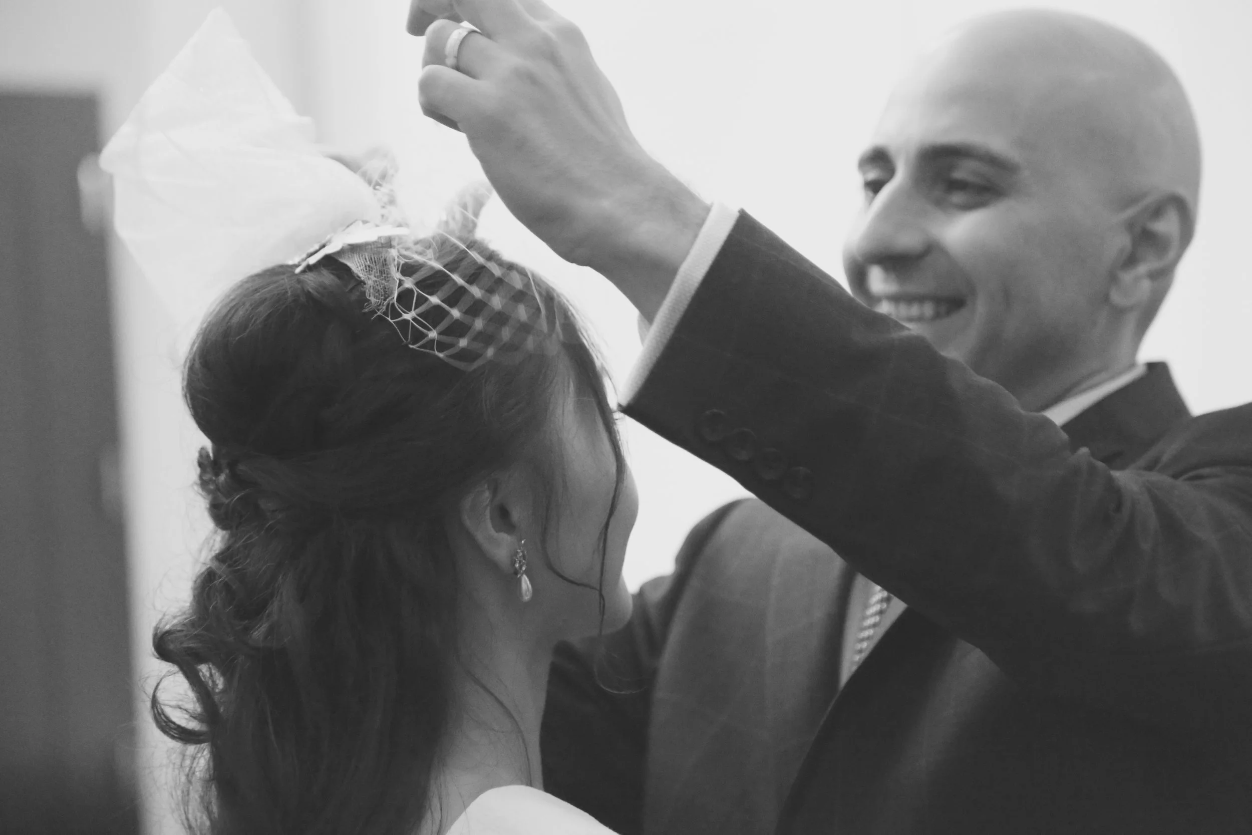 Cecilia Zhang and Waleed at their wedding, with fascinator “Jasmine” ©2016 Chapeau Echo 回声古董帽工作室